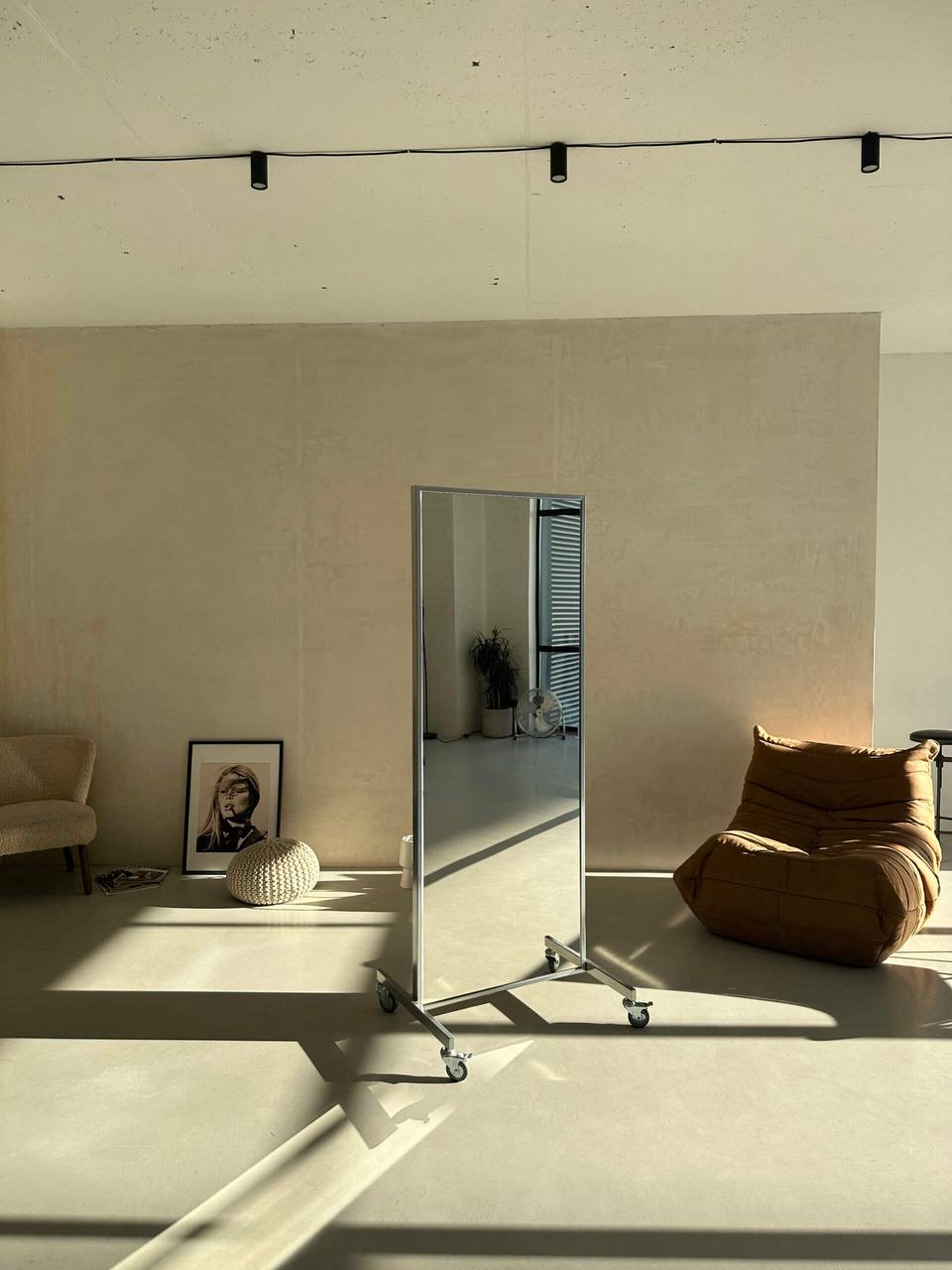 Минималистичный интерьер и нейтральная палитра подходят для fashion, портретных и коммерческих съёмок. Текстурная стена добавляет художественный акцент для лукбуков и рекламных проектов. Винтажный диван и лаконичный декор позволяют создавать lifestyle-образы и современные архитектурные кадры, а также видео-контент.